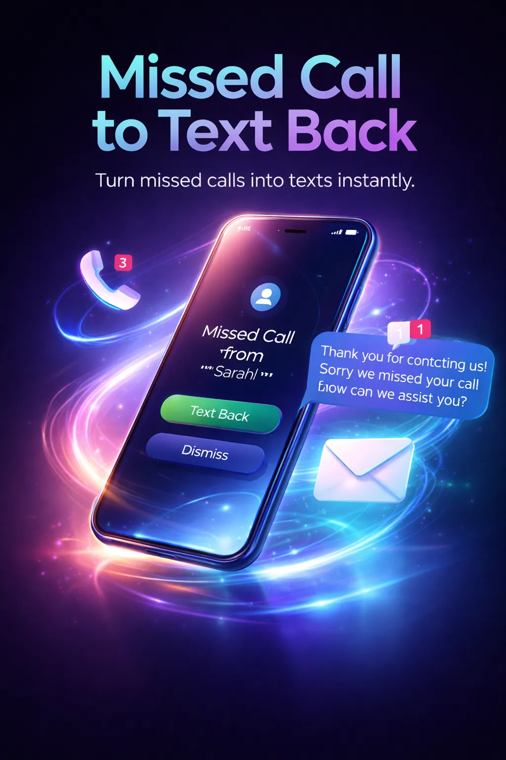 Never miss a lead again with our Missed Calls to Text solution. When a customer calls and no one answers, our AI instantly sends a personalized text message to keep the conversation going. This ensures your business stays responsive, captures every opportunity, and improves customer satisfaction effortlessly.